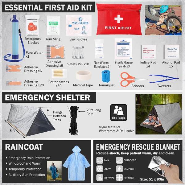 캠핑, 하이킹, 부시크래프트, 생존 훈련, 긴급 상황 등 무엇을 준비하든 이 키트는 가장 중요한 순간에 대비할 수 있도록 도와줍니다.